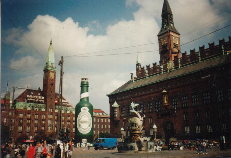 1 big bottle of Carlsberg in front of the Radhuset (City Hall)